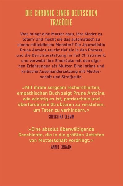 »Das Nachdenken darüber: wird in unserer Gesellschaft das Leben von Frauen angemessen betrachtet, angemessen unterstützt und auch juristisch angemessen beurteilt - das ist das wirklich Bereichernde in diesem Buch.« Christina Clemm, Deutschlandfunk Kultur, 17.5.25 »Eine erschütternde Spurensuche, die weniger über die Tragödie einer Familie aussagt als vielmehr über die Rolle der Mutter in Deutschland... Ein blitzgescheites und fesselndes Buch.« Kristina Schmidl, Südwest Presse, 2.6.25 »Ein gut recherchiertes... schonungsloses Buch. Es macht betroffen.« Claudia Bayer, Nürnberger Nachrichten, 20.5.25 »Aufschlussreich legt Prune Antoine nicht nur die Unzulänglichkeiten des Rechtssystems in Deutschland offen, ... sie regt auch zu einem grundsätzlichen Nachdenken über das Frauen- und Mutterbild an, und wie diese noch vielfach in gesellschaftliche Strukturen eingeschrieben sind.« Valerie Bäuerlein, Berliner Morgenpost, 22.5.2025