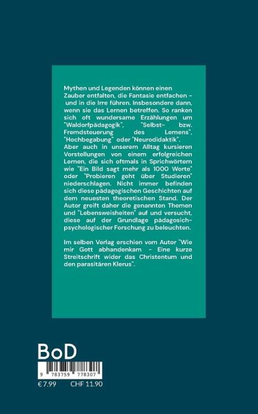 Mythen und Legenden können einen Zauber entfalten, die Fantasie entfachen - und in die Irre führen. Insbesondere dann, wenn sie das Lernen betreffen. So ranken sich oft wundersame Erzählungen um Themen wie "Waldorfpädagogik", die "Befruchtung der Lernkultur durch die Neurowissenschaften", "Hochbegabung" oder - vor allem im Bereich schulischen Lernens - "Selbst- oder Fremdsteuerung des Lernprozesses". Aber auch in unserem Alltag kursieren inzwischen überlieferte Vorstellungen von einem erfolgreichen Lernen, die sich oftmals in Sprichwörtern wie "Ein Bild sagt mehr als 1000 Worte" oder "Probieren geht über Studieren" niederschlagen. Nicht immer befinden sich diese pädagogischen Geschichten auf dem neuesten theoretischen Stand. Der Autor greift daher die genannten Themen und "Lebensweisheiten" auf und versucht, auf der Grundlage lernpsychologischer Forschungsergebnisse ein wenig Licht in die Diskussionen zu bringen.