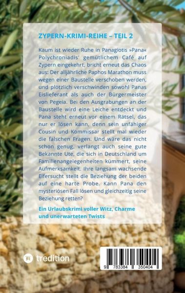 Ein vermisster Eisverkäufer und ein verschwundener Bürgermeister sorgen auf Zypern für reichlich Trubel - Panas zweiter FallDie spannende Fortsetzung der humorvollen Cosy Krimi Reihe vor der mediterranen KulisseKaum ist wieder Ruhe in Panagiotis "Pana" Polychroniadis' gemütlichem Café auf Zypern eingekehrt, bricht erneut das Chaos aus: Der alljährliche Paphos Marathon muss wegen einer Baustelle verschoben werden, und plötzlich verschwinden sowohl Panas Eislieferant als auch der Bürgermeister von Pegeia. Bei den Ausgrabungen an der Baustelle wird eine Leiche entdeckt und Pana steht erneut vor einem Rätsel, das nur er lösen kann, denn sein unfähiger Cousin und Kommissar stellt mal wieder die falschen Fragen. Und wäre das nicht schon genug, verlangt auch seine gute Bekannte Ute, die sich in Deutschland um Familienangelegenheiten kümmert, seine Aufmerksamkeit. Ihre langsam wachsende Eifersucht stellt die Beziehung der beiden auf eine harte Probe. Kann Pana den mysteriösen Fall lösen und gleichzeitig seine Beziehung retten?