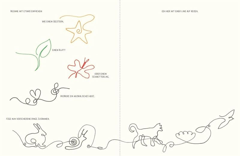 »Zeichnen ist die Kunst, Striche spazieren zu führen.« Paul KleeWas wäre, wenn Zeichnen so einfach wäre wie einen Bleistift in die Hand zu nehmen und über das Papier zu bewegen? Es würde Spaß machen wie ein Spiel und sich aufregend anfühlen wie eine Abenteuerreise! Marion Deuchars weiß wie keine andere, wie Kreativität geweckt und dabei Kunst geschaffen werden kann. Ob es darum geht, eine Linie mit Schluckauf zu zeichnen, ein visuelles Katz-und-Maus-Spiel zu spielen oder eine Linie durch ein Labyrinth aus belebten Straßen zu führen - Marion Deuchars hat überraschende Vorschläge, wie Zeichnen Spaß machen kann.Ohne sich Gedanken darüber machen zu müssen, was sie zeichnen sollen oder wie das Ergebnis aussehen könnte, können Kinder und Erwachsene den über hundert Anregungen folgen und sehen, wohin sie diese führen. Dank Deuchars' geschickter Anleitung ist jede Zeichnung ein Spiel, das zu einem Kunstwerk wird. Das Buch ist gespickt mit Deuchars' eigenen wunderschönen Strichzeichnungen, die alle entstanden sind, indem sie einfach mit einer Linie auf Reisen ging.