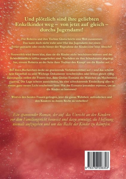 Eine Löwenoma gibt niemals auf Und plötzlich sind ihre geliebten Enkelkinder weg - von jetzt auf gleich - durchs Jugendamt!Für Roberta und ihre Tochter Gloria bricht eine Welt zusammen:Das kann doch nicht wahr sein! Hat das Jugendamt nur einen Fehler gemacht oder steckt hinter der Wegnahme der Kinder eine böse Absicht?Verzweifelt wird ihnen klar, dass sie die Kinder nicht beschützen können und der Behördenwillkür hilflos ausgeliefert sind. Nachdem sie die Schockstarre abgelegt hat, nimmt Roberta an der Seite ihrer Tochter den Kampf um die Kinder auf. Bei ihren Recherchen deckt sie gravierende Verfahrensfehler auf - und das scheint kein Einzelfall zu sein! Wichtige Dokumente verschwinden oder fehlen gleich völlig. Fassungslos stellen die Frauen fest, dass Glorias Exmann die Mädchen als Machtmittel einsetzt. Die Lage scheint aussichtslos. bis eine schockierende Entdeckung alles in einem ganz neuen Licht erscheinen lässt: Hat der Exmann jemanden erpresst, um an die Kinder zu kommen?Wird es den beiden Frauen gelingen, jetzt die ganze Wahrheit aufzudecken und den Kindern zu ihrem Recht zu verhelfen?Ein spannender Roman, der auf das Unrecht an den Kindern vor dem Familiengericht hinweist und dazu ermutigt, die Hoffnung niemals aufzugeben und um das Recht der Kinder zu kämpfen.