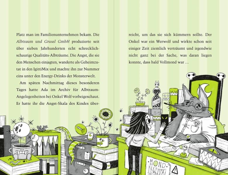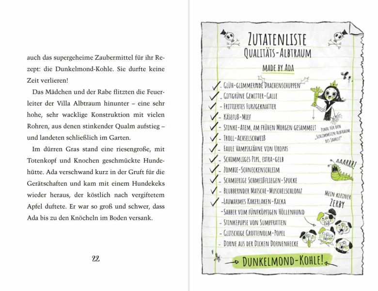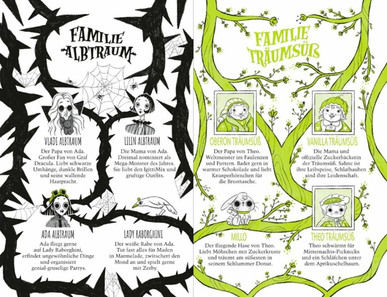 Ada Albtraum ist total aufgeregt: Zum ersten Mal darf sie einem Menschenkind einen schlechten Traum bringen! Vergnügt sucht sie die Zutaten zusammen: Stinkefußmief, Hundesabber, Rattenpups und vieles mehr. Doch dann erfährt sie, dass auch Theo Träumsüß von nebenan sich in dieser Nacht auf den Weg machen wird - und zwar mit seinem ersten schönen Traum! Klar, dass das nur schiefgehen kann. Schließlich sind ihre Familien schon immer verfeindet! So nimmt das Chaos seinen Lauf ... und ein turbulentes Abenteuer beginnt.