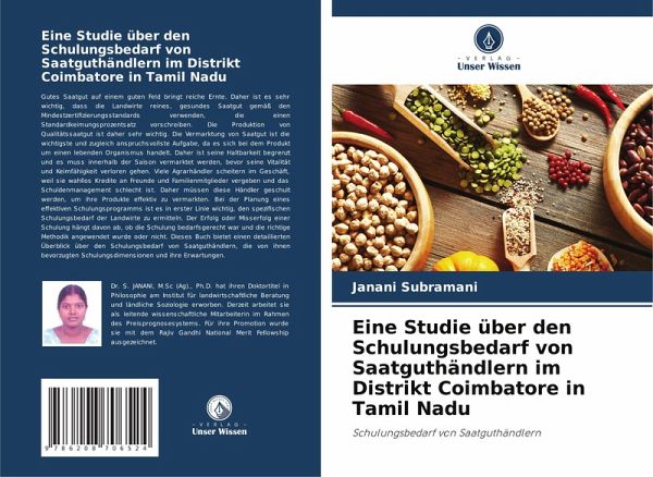 Gutes Saatgut auf einem guten Feld bringt reiche Ernte. Daher ist es sehr wichtig, dass die Landwirte reines, gesundes Saatgut gemäß den Mindestzertifizierungsstandards verwenden, die einen Standardkeimungsprozentsatz vorschreiben. Die Produktion von Qualitätssaatgut ist daher sehr wichtig. Die Vermarktung von Saatgut ist die wichtigste und zugleich anspruchsvollste Aufgabe, da es sich bei dem Produkt um einen lebenden Organismus handelt. Daher ist seine Haltbarkeit begrenzt und es muss innerhalb der Saison vermarktet werden, bevor seine Vitalität und Keimfähigkeit verloren gehen. Viele Agrarhändler scheitern im Geschäft, weil sie wahllos Kredite an Freunde und Familienmitglieder vergeben und das Schuldenmanagement schlecht ist. Daher müssen diese Händler geschult werden, um ihre Produkte effektiv zu vermarkten. Bei der Planung eines effektiven Schulungsprogramms ist es in erster Linie wichtig, den spezifischen Schulungsbedarf der Landwirte zu ermitteln. Der Erfolg oder Misserfolg einer Schulung hängt davon ab, ob die Schulung bedarfsgerecht war und die richtige Methodik angewendet wurde oder nicht. Dieses Buch bietet einen detaillierten Überblick über den Schulungsbedarf von Saatguthändlern, die von ihnen bevorzugten Schulungsdimensionen und ihre Erwartungen.