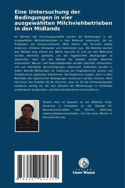 Im Rahmen des Forschungsprojekts wurden die Bedingungen in vier ausgewählten Milchviehbetrieben in den Midlands untersucht, die zur Produktion von blutverschmierter Milch führen. Der Forscher wählte Anderson, Chikwira, Blinkwater und Coolmoreen aus. Alle Betriebe wurden drei Monate lang einmal pro Woche besucht. In und um den Melkstand wurden Abstriche gemacht, um die hygienischen Bedingungen zu überprüfen. Auch von den Händen der Arbeiter wurden Abstriche entnommen. Wasser- und Futtermittelproben wurden ebenfalls entnommen und auf mikrobielle Verunreinigungen untersucht. Außerdem wurden in jedem Betrieb Milchproben zur Isolierung von Staphylococcus aureus und Streptococcus agalactiae entnommen. Die Ergebnisse zeigten, dass in allen Betrieben die hygienischen Bedingungen verbessert werden müssen. Nach Abschluss des Projekts rät der Forscher, dass es für die milcherzeugenden Landwirte wichtig ist, die vom Verband der Milcherzeuger in Simbabwe empfohlenen Sauberkeits- und Kontrollmaßnahmen durchzuführen.