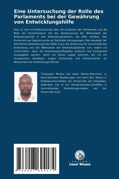 Dies ist eine Schreibtischstudie über die Institution des Parlaments und die Rolle der Parlamentarier bei der Verbesserung der Wirksamkeit der Entwicklungshilfe in den Entwicklungsländern, die Hilfe erhalten. Das Parlament von Uganda wurde als Fallstudie herangezogen. Das Hauptziel der öffentlichen Entwicklungshilfe (ODA) muss die Förderung der wirtschaftlichen Entwicklung und des Wohlstands der Entwicklungsländer sein. Indem sie sicherstellen, dass die Entwicklungshilfegelder verbucht und transparent ausgegeben werden, damit sie denen zugute kommen, die sie am dringendsten benötigen, tragen Parlamente und Parlamentarier zur Wirksamkeit der Entwicklungshilfe bei.
