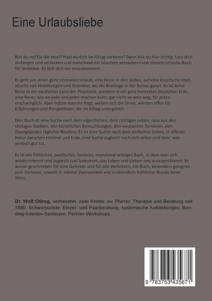 UrlaubsliebeBist du reif für die Insel? Hast du dich im Alltag verloren? Dann bist du hier richtig. Lass dich einfangen und verlocken und manchmal ein bisschen verzaubern von diesem Urlaubs-Buch für Verliebte. Es lädt dich ein mitzukommen. Es geht um einen ganz normalen Urlaub, eine Reise in den Süden, auf eine kroatische Insel, abseits von Hotelburgen und Stränden, wo die Bratlinge in der Sonne garen. Es ist keine Reise in ein exotisches Land der Phantasie, sondern in ein ganz konkretes Stückchen Erde, eine Reise, wie sie jede und jeder machen kann, gar nicht so weit weg, für jeden erschwinglich. Aber indem man ihr folgt, weiten sich die Sinne, werden offen für Erfahrungen und Perspektiven, die im Alltag untergehen. Dies Buch ist eine Suche nach dem eigentlichen, dem richtigen Leben, raus aus den stickigen Städten, den künstlichen Beleuchtungen, den verplanten Terminen, den Zwangsjacken täglicher Routine. Es ist eine Suche nach dem einfachen Leben, in offener Natur zwischen Himmel und Erde, eine Suche zugleich nach sich selbst und dem, was wirklich gut tut. Es ist ein fröhliches, poetisches, heiteres, manchmal witziges Buch, in dem man sich wiedererkennt und zugleich Lust bekommt, das Leben und Lieben neu auszuprobieren. Es wurde geschrieben für eine Geliebte und für alle Verliebten, ein Buch, besonders geeignet zum Vorlesen, sowohl in intimer Zweisamkeit wie in abendlichfröhlicher Runde beim Wein.