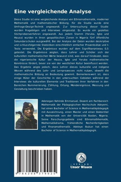 Diese Studie ist eine vergleichende Analyse von Ethnomathematik, moderner Mathematik und mathematischer Bildung. Für die Studie wurde eine Umfrage-Design-Technik angewandt. Zur Untersuchung dieser Studie wurden Fragebögen und Interviews eingesetzt. Es wurde ein gezieltes Stichprobenverfahren angewandt. Aus jedem Stamm (Yoruba, Igbo und Hausa) wurden in ihren geopolitischen Zonen in Nigeria fünf öffentliche Sekundarschulen ausgewählt. Bei der Analyse der Daten wurden deskriptive und schlussfolgernde Statistiken einschließlich einfacher Prozentsätze und t-Tests verwendet. Die Ergebnisse wurden auf dem Signifikanzniveau 0,5 getestet. Die Ergebnisse zeigten, dass Lehrer und Schüler sich der kulturellen mathematischen Werte bewusst sind, was darauf hindeutet, dass die nigerianische Kultur der Hausa, Igbo und Yoruba mathematische Kenntnisse fördert, bevor sie von der westlichen Kultur beeinflusst werden. Das Ergebnis zeigte jedoch, dass Lehrer dieses kulturelle und indigene Wissen während des Lehr- und Lernprozesses nicht nutzen, obwohl die mathematische Bildung an Bedeutung gewinnt. Bemerkenswert ist, dass einige Hüter der Geschichte in den untersuchten Gebieten während der Interviews die kulturellen Elemente und Traditionen ihrer Vorfahren in den Bereichen Nummerierung, Zählung, Ortung, Mondereignisse, Messung und Gestaltung beschrieben haben.