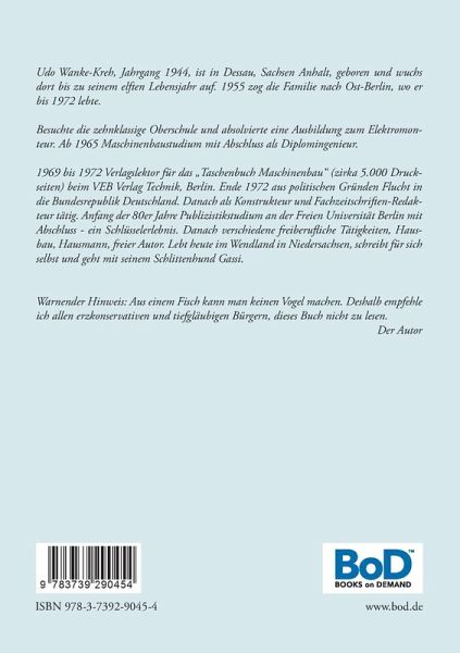 Unzufrieden mit der vorgefundenen zerrissenen Welt, die ein Leben des Menschen mit der Natur, Kultur und sich im Einklang verwehrt, stellt sich der Autor die Frage, ob sein Leben hätte anders verlaufen können. Als Antwort entwirft Wanke-Kreh ein Weltmodell, das ein glückliches und friedliches Zusammenleben aller Menschen ermöglicht. Da wir dafür genug Substanz haben - so der Verfasser zuversichtlich - könnte seine Vision nicht nur Traum bleiben, sondern auch vorweggenommene Zukunft sein. Waren nicht Autofahren und Fliegen, heute längst Alltag, einst Träume? Unter dieser Prämisse versteht der Autor seine Visionäre Biografie als Anregung, den Nachkommen den realisierbaren Traum eines sinnvollen Lebens zu hinterlassen. Sein Wahlspruch: Weiterleben durch Weitergeben ist die Ambrosia unseres Daseins.