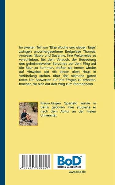 Im zweiten Teil von "Eine Woche und sieben Tage" zwingen unvorhergesehene Ereignisse Thomas, Andreas, Nicole und Susanne, ihre Weiterreise zu verschieben. Bei dem Versuch, der Bedeutung des geheimnisvollen Spruches auf dem Ring auf die Spur zu kommen, stoßen sie immer wieder auf Hinweise, die mit einem alten Haus in Verbindung stehen, über das niemand gerne redet. Um Antworten auf ihre Fragen zu erhalten, machen sie sich auf den Weg zum Sternenhaus.