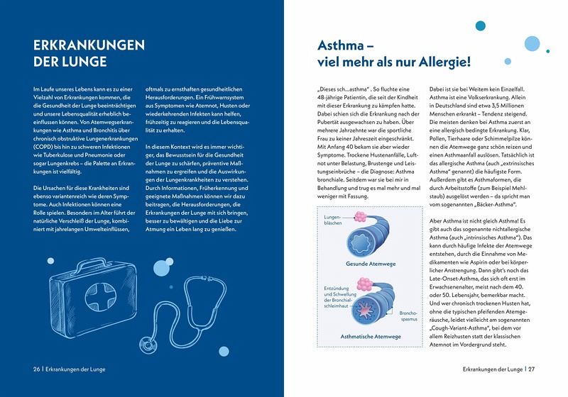 Unsere Lunge ist ein echtes Wunderwerk - sie sorgt dafür, dass uns jeder Atemzug mit lebenswichtigem Sauerstoff versorgt. Aber: Das sensible Organ steht ständig unter Beschuss, Viren, Pollen, Feinstaub und Zigarettenrauch setzen ihm mächtig zu. Die Folgen sind dramatisch: Mehr als 14 Millionen Deutsche leiden unter chronischen Lungen- und Atemwegserkrankungen wie Asthma, COPD oder Bronchitis. Die gute Nachricht: Viele dieser Probleme lassen sich mit der richtigen Prävention vermeiden. In seinem Buch nimmt uns der TV-Mediziner und Lungenfacharzt Heinz-Wilhelm Esser, bekannt als Doc Esser, mit auf eine spannende Reise in die Tiefen unseres Atemsystems. Er zeigt, wie wir unsere Lunge stärken und wieder fit machen können. Mit fundiertem Fachwissen und einer Prise Humor klärt Doc Esser auf: Welche Krankheiten gibt es? Wie werden sie behandelt? Und vor allem: Was kann jeder selbst tun, um vorzubeugen? Atemübungen, innovative Therapien und simple Tricks stehen dabei im Fokus - nach dem Motto: Die Lunge braucht Luft und Liebe.