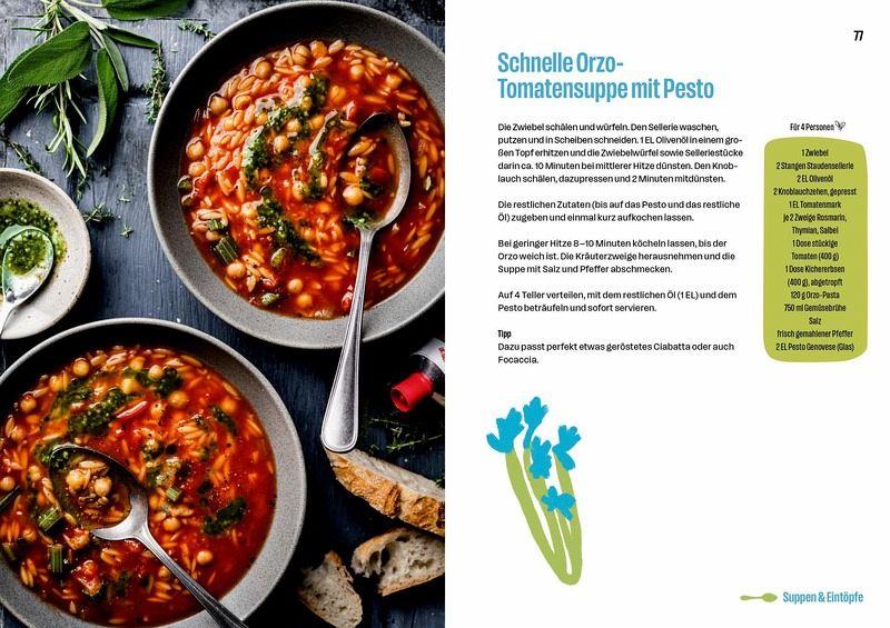 Ein Muss für alle Genießer! "Einfach gut - Kreative Alltagsküche" zeigt, wie köstlich und einfach Kochen sein kann. Mit über 60 Rezepten, die alltagstauglich, kreativ und gelingsicher sind, wird jede Mahlzeit zum Highlight. Ob würzige Burrito-Pfanne, schnelle Orzo-Tomatensuppe mit Pesto oder feines Coq au Riesling - hier ist für jeden Geschmack etwas dabei. Ein perfektes Geschenk für Kochliebhaber!