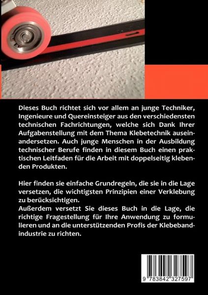 Dieses Buch richtet sich vor allem an junge Techniker, Ingenieure und Quereinsteiger aus den verschiedensten technischen Fachrichtungen, welche sich Dank Ihrer aktuellen Aufgabenstellung mit dem Thema Klebetechnik auseinandersetzen. Auch junge Menschen in der Ausbildung technischer Berufe finden in diesem Buch einen praktischen Leitfaden für die Arbeit mit doppelseitig klebenden Produkten.Hier finden sie einfache Grundregeln, die sie in die Lage versetzen, die wichtigsten Prinzipien einer Verklebung zu berücksichtigen. Außerdem versetzt Sie dieses Buches in die Lage, die richtigen Fragestellungen für Ihre Anwendung zu formulieren und an die unterstützenden Profis der Klebebandindustrie zu richten.
