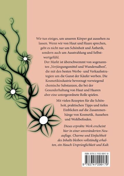 Wir tun einiges, um unseren Körper gut aussehen zu lassen. Wenn wir von Haut und Haare sprechen, geht es nicht nur um Schönheit und Ästhetik, sondern auch um Ausstrahlung und Selbstwertgefühl. Der Markt ist überschwemmt von sogenannten Verjüngungsmitteln und Wundersalben, die mit den besten Werbe- und Verkaufsstrategien um die Gunst der Käufer werben. Die Kosmetikindustrie bevorzugt vorwiegend chemische Substanzen, die bei der Gesunderhaltung von Haut und Haaren aber eine untergeordnete Rolle spielen.Mit vielen Rezepten für die Schönheit, praktischen Tipps und tiefen Einblicken auf die Zusammenhänge von Kosmetik, Aussehen und Wohlbefinden. Dieses erprobte Werk erscheint hier in einer unveränderten Neuauflage. Charme und Einfachheit des Inhalts bleiben vollständig erhalten, ein Hauch Ursprünglichkeit und Kult.