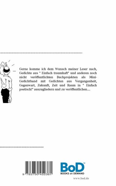 Gerne komme ich dem Wunsch meiner Leser nach, Gedichte aus " Einfach traumhaft" und anderen noch nicht veröffentlichten Buchprojekten als Mini- Gedichtband mit Gedichten aus Vergangenheit, Gegenwart, Zukunft, Zeit und Raum in " Einfach poetisch" zu veröffentlichen