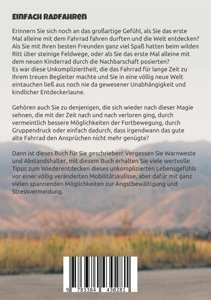 Erinnern Sie sich noch an das großartige Gefühl, als Sie das erste Mal alleine mit dem Fahrrad fahren durften und die Welt entdecken? Als Sie mit Ihren besten Freunden ganz viel Spaß hatten beim wilden Ritt über steinige Feldwege, oder als Sie das erste Mal alleine mit dem neuen Kinderrad durch die Nachbarschaft posierten? Es war diese Unkompliziertheit, die das Fahrrad für lange Zeit zu Ihrem treuen Begleiter machte und Sie in eine völlig neue Welt eintauchen ließ aus noch nie da gewesener Unabhängigkeit und kindlicher Entdeckerlaune.Wenn auch Sie zu denjenigen gehören, die sich wieder nach dieser Magie sehnen, dann ist dieses Buch für Sie geschrieben! Vergessen Sie Warnweste und Abstandshalter, mit diesem Buch erhalten Sie viele wertvolle Tipps zum Wiederentdecken dieses unkomplizierten Lebensgefühls vor einer völlig veränderten Mobilitätskulisse, aber dafür mit ganz vielen spannenden Möglichkeiten zur Angstbewältigung und Stressvermeidung:- Fahrtipps, z.B. Streckenwahl, Richtig klingeln, Klare Gesten, Körpersprache- Techniktipps z.B. Multimedia, Sicherheit, Aerodynamik, Reifendruck, etc.- Übungen zu Kadenz, Selbstvermessung, Bikefitting- Alltagstipps zu Kindertransport, Richtig beladen, Mit dem Rad zur Arbeit/Einkaufen mit dem Rad, Mit Provokationen gelassen umgehen, Blitz-Entspannung, Kleidungstipps für Pendler/Reiseradler/Freizeitradler, Radfahren bei jedem Wetter- Sicherheitstipps, z.B. Entspannter überholt WERDEN, Dooring vermeiden, Sichtbarkeit verbessern v.a. Gesten/Körpersprache/Kleidung