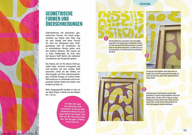 Kristina Schaper zeigt, wie in kurzer Zeit viele Meter einzigartiger Stoffe entstehen, die es in keinem Geschäft zu kaufen gibt. Denn Siebdruck geht auch im Lowtech-Verfahren mit einem Minimum an Ausstattung! Der Siedruckrahmen wird selbst gebaut und dann geht's los. Die Motive können auf verschiedene Arten auf das Sieb aufgebracht und gedruckt werden. Durch die Kombination von flächigen Motiven mit unterschiedlichen fotobelichteten grafischen Mustern entstehen bunte Stoff-Unikate, die zu Taschen, Kleidung oder Wohntextilien weiterverarbeitet werden können.Auch wer sich selbst nicht für kreativ hält, wird mit diesen experimentierfreudigen Methoden tolle Drucke erzielen.