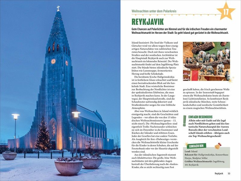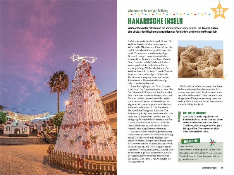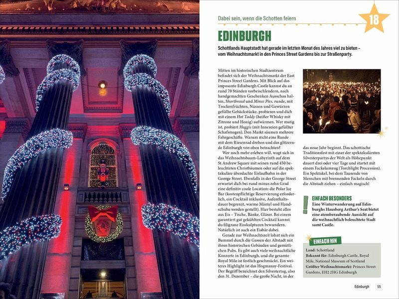 Entdecke Europas schönste Weihnachtsstädte auf die wohl unkomplizierteste Art und Weise: »Einfach Weihnachten!« zeigt dir mit den 30 Top-Tipps die unterschiedlichen Besonderheiten der Länder. In Amsterdam erschaffen Künstler Lichtinstallationen entlang der Grachten, Salzburgs Höhepunkt ist das Adventssingen, Madrid feiert die Parade der Heiligen Drei Könige und der Plaisirs d'Hiver in Brüssel bietet eine riesige Eislaufbahn. Kein Vorbereitungsstress, einfach losreisen und verzaubern lassen.
