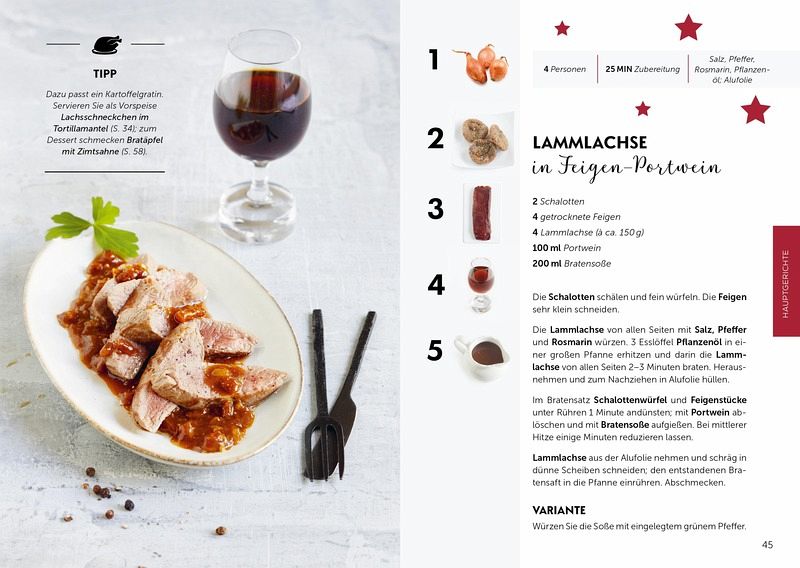 Entspannt festlich kochen - so einfach zubereitet war das Weihnachtsessen noch nie! Damit die schönste Zeit des Jahres nicht in Stress ausartet, finden sich in "Einfach Weihnachtsrezepte" über 25 spannende Rezeptideen fürs Fest. Egal, ob Vorspeisen oder Hauptgerichte, ob klassische Beilagen oder Desserts - alle Gerichte lassen sich mit nur maximal 6 Zutaten im Handumdrehen herstellen und so untereinander kombinieren, dass köstliche Festtags-Menüs entstehen. Unter den Rezepten finden sich der klassische Gänsebraten ebenso wie Rotkohl mit Äpfeln und Orangen-Fenchelsalat mit Schinken-Grissini. Bebilderte Zutaten und eine gut lesbare Schriftgröße bringen besonderen Komfort beim Nachkochen - mit wenig Aufwand und maximalem Genuss wird Weihnachten ein Fest!