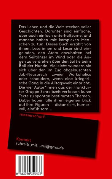 Die hier versammelten Geschichten entstanden in der Schreibzeit. In dieser Frankfurter Schreibgruppe verfassen die Teilnehmenden alle zwei Monate zu einem jeweils spontan bestimmten Thema einen kurzen Text.