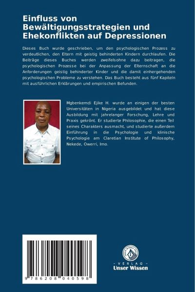Dieses Buch wurde geschrieben, um den psychologischen Prozess zu verdeutlichen, den Eltern mit geistig behinderten Kindern durchlaufen. Die Beiträge dieses Buches werden zweifelsohne dazu beitragen, die psychologischen Prozesse bei der Anpassung der Elternschaft an die Anforderungen geistig behinderter Kinder und die damit einhergehenden psychologischen Probleme zu verstehen. Das Buch besteht aus fünf Kapiteln mit ausführlichen Erklärungen und empirischen Befunden.
