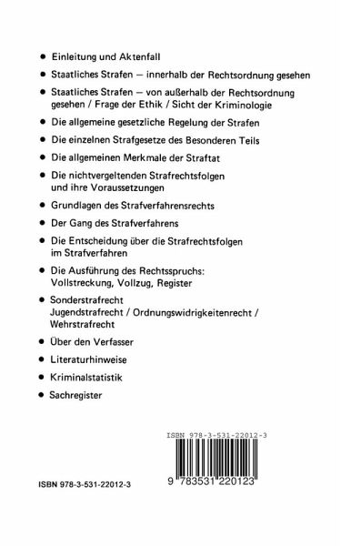 in das Strafrecht 2., neu bearbeitete Auflage Westdeutscher Verlag CIP-Kurztitelaufnahme der Deutschen Bibliothek Schmidhäuser, Eberhard. Einführung in das Strafrecht/Eberhard Schmid häuser. - 2., neubearb. Aufl. - Opladen: Westdeutscher Verlag, 1984. (WV-Studium; Bd. 12) ISBN 978-3-531-22012-3 ISBN 978-3-322-93727-8 (eBook) DOI 10.1007/978-3-322-93727-8 NE:GT 1.-17. Tausend Oktober 1972 2., neu bearbeitete Auflage 1984 © Westdeutscher Verlag GmbH, Opladen 1980, 1984 Alle Rechte vorbehalten Die Vervielfältigung und Übertragung einzelner Textabschnitte und Zeichnun gen oder Bilder, auch für Zwecke der Unterrichtsgestaltung, gestattet das Urhe berrecht nur, wenn sie mit dem Verlag vorher vereinbart wurden. Im Einzelfall muß über die Zahlung einer Gebühr für die Nutzung fremden geistigen Eigen tums entschieden werden. Das gilt für die Vervielfältigung durch alle Verfahren einschließlich Speicherung und jede Übertragung auf Papier, Transparente, Filme, Bänder, Platten und andere Medien. Umschlaggestaltung: Horst Dieter Bürkle, Darmstadt Satz: R.-E. Schulz, Dreieich-Buchschlag ISBN 978-3-531-22012-3 INHALTSVERZEICHNIS I. Einleitung und Aktenfall ............................. 7 11. Staatliches Strafen - innerhalb der Rechtsordnung gesehen 37 III. Staatliches Strafen - von außerhalb der Rechtsordnung - sehen .............................................. 49 1. Frage der Ethik .............. ,......................... 49 2. Sicht der Kriminologie .................................. 59 IV. Die allgemeine gesetzliche Regelung der Strafen 82 V. Die einzelnen Strafgesetze des Besonderen Teils 102 1. Aufgabe und Art der Regelung.. . . . . . . . . . . . . . . . .. . . 102 . . . . . .