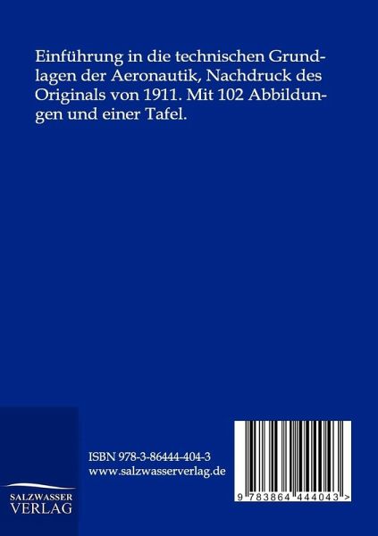Einführung in die technischen Grundlagen der Aeronautik, Nachdruck des Originals von 1911. Mit 102 Abbildungen und einer Tafel.
