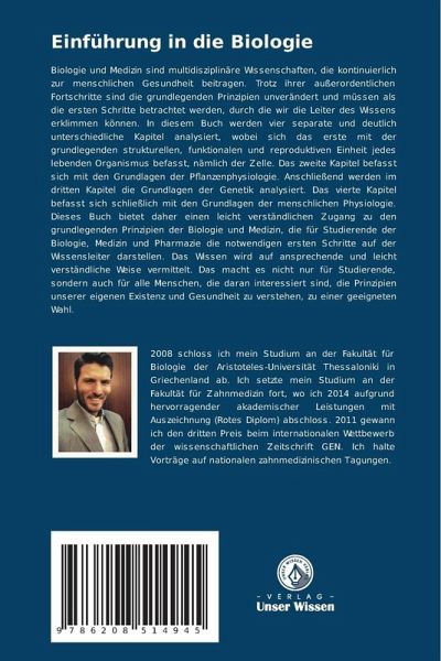 Biologie und Medizin sind multidisziplinäre Wissenschaften, die kontinuierlich zur menschlichen Gesundheit beitragen. Trotz ihrer außerordentlichen Fortschritte sind die grundlegenden Prinzipien unverändert und müssen als die ersten Schritte betrachtet werden, durch die wir die Leiter des Wissens erklimmen können. In diesem Buch werden vier separate und deutlich unterschiedliche Kapitel analysiert, wobei sich das erste mit der grundlegenden strukturellen, funktionalen und reproduktiven Einheit jedes lebenden Organismus befasst, nämlich der Zelle. Das zweite Kapitel befasst sich mit den Grundlagen der Pflanzenphysiologie. Anschließend werden im dritten Kapitel die Grundlagen der Genetik analysiert. Das vierte Kapitel befasst sich schließlich mit den Grundlagen der menschlichen Physiologie. Dieses Buch bietet daher einen leicht verständlichen Zugang zu den grundlegenden Prinzipien der Biologie und Medizin, die für Studierende der Biologie, Medizin und Pharmazie die notwendigen ersten Schritte auf der Wissensleiter darstellen. Das Wissen wird auf ansprechende und leicht verständliche Weise vermittelt. Das macht es nicht nur für Studierende, sondern auch für alle Menschen, die daran interessiert sind, die Prinzipien unserer eigenen Existenz und Gesundheit zu verstehen, zu einer geeigneten Wahl.