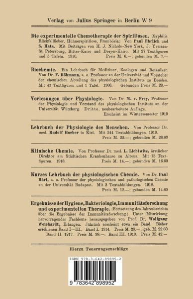 IV daB es einen Gegensatz zwischen theoretischel' Medizin und Reil kunst nicht gibt, daB vielmehr das Verstandnis des Experimentes eins der unbedingt notwendigen Rilfsmittel ist, welcher der Arzt fiir die kunstgerechte Ausiibung seiner schwierigen Aufgabe bedarf. Natiirlich darf man die Zeit des Studierenden und ebensowenig die knappen Stunden, die dem Arzt fiir seine Fortbildung bleiben, nicht zu sehr in Anspruch nehmen. Darum war Kiirze angebracht, die sich auch ohne Opferung wertvollen Materials erreiehen lieB. Immer war ieh darauf bedacht, den Zusammenhang mit del' Praxis zu betonen. Experimentelle Therapie ist durchaus geeignet, im wahrsten Sinne praktische Dienste zu leisten. Rier lernt der Arzt, was naturwissenschaftlich feststeht. Wer experimentelle Therapie stu diert hat, ist befahigt zu unterseheiden, ob eine neu empfohlene Heilmethode saehlieh fundiert ist oder ob eiil. dilettantiseher Irr weg eingesehlagen wurde, dessen Beschreiten fiir den arztlichen Stand ebenso sehadlieh ist wie fiir die kranken Menschen. Hier _gehen die Aufgaben der experimentellen Therapie durehaus mit der altbewahrten Pharmakologie parallel. Wenn auch die neue Auflage dazu beitragen wird, zum kri tisehen Optimismus zu erziehen, so wird das Buch weiterhin seinen Zweck erfiillen. Berlin, September 1919. Martin Jacoby. Inhaltsverzeic hnis.
