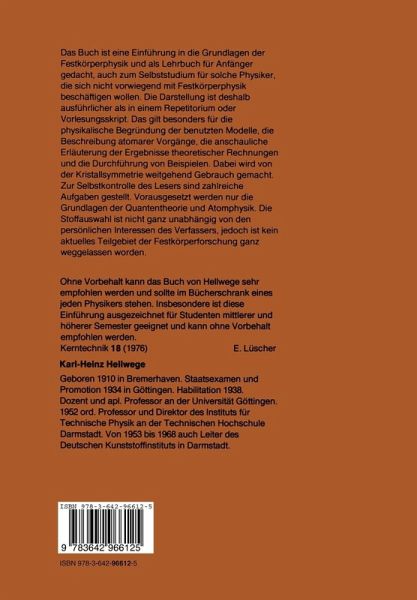 Wegen der viel mehr Freiheitsgrade des zu behandelnden Sy stems ist die Festkorperphysik umfangreicher und auch kompli zicrter als die Atom- oder Molekelphysik. In der Reihe der Heidel berger Taschenbucher (HTB) wurden deshalb - gegenuber einem Band fUr je eine EinfUhrung in die Physik der Atome 1 und der Molekeln 2 - drei Bande fii.r eine EinfUhrung in die Festkorper physik vorgesehen. Von diesen sind zwei erschienen 3; die Ar beit an dem abschlie13enden dritten Band mu13te aus gesundheitlichen Grunden fUr langere Zeit zuruckgestellt werden. Bei der Wiederaufnahme der Arbeit wurden dann aber auch die bereits erschienenen Kapitel uberarbeitet und erganzt, so da13 jetzt eine zusammenhangende, geschlossene Einfuhrung in einem einzigen Band vorgelegt werden kann. Der Charakter des Buches als eine Einfuhrung fUr Anfanger wurde dabei nicht geandert. Die Darstellung ist deshalb ausfUhr licher als in einem Repetitorium oder einem Vorlesungsskript. Das gilt besonders fUr die physikalische Begrundung der benutzten Modelle, fUr die Beschreibung atomistischer Vorgange, die physi kalische Interpretation theoretischer Ergebnisse und fUr die Be handlung vieler Beispiele, einschlie13lich experimenteller Ergebnisse und ihrer Auswertung. Leider steht in den Pfticht-Lehrplanen der Hochschulen die fUr die Einfuhrung in die Festkorperphysik erforderliche Zeit im all gemeinen noch immer nicht zur Verfugung, so daB nur eine stoff liche Auswahl in den Kursvorlesungen dargeboten werden kann.