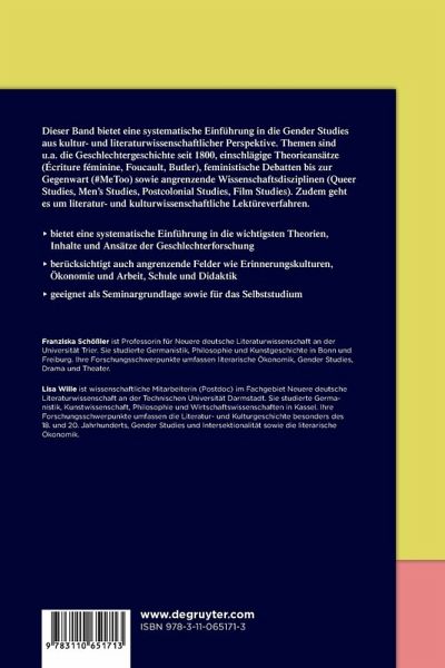 Typisch Frau, typisch Mann - was heißt das eigentlich? Weiblichkeit und Männlichkeit werden nicht allein durch den anatomisch-biologischen Diskurs ('Sex') definiert, sondern auch durch Rollenangebote wie z.B. Kleidercodes und Verhaltensnormen. Die Gender Studies legen den Fokus auf diese soziale Konstruktion von Geschlecht ('Gender'). Dieses dynamische und mittlerweile institutionalisierte Forschungsfeld stellen Franziska Schößler und Lisa Wille aus literatur- und kulturwissenschaftlicher Perspektive vor. Der Band bietet eine systematische Einführung in die Gender Studies, Themen sind u.a. die Geschlechtergeschichte seit 1800, einschlägige Theorieansätze (Écriture féminine, Foucault, Butler), feministische Debatten bis zur Gegenwart (#MeToo) sowie angrenzende Felder (Queer, Men's Studies, Postcolonial Studies, Film Studies). Zudem geht es um literatur- und kulturwissenschaftliche Lektüreverfahren sowie um Erinnerungskulturen, Kanondebatten, Schule und Didaktik, Arbeit und Ökonomie.