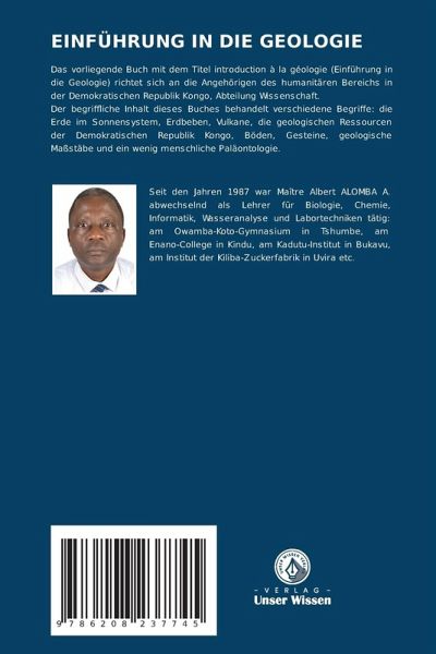 Das vorliegende Buch mit dem Titel introduction à la géologie (Einführung in die Geologie) richtet sich an die Angehörigen des humanitären Bereichs in der Demokratischen Republik Kongo, Abteilung Wissenschaft.Der begriffliche Inhalt dieses Buches behandelt verschiedene Begriffe: die Erde im Sonnensystem, Erdbeben, Vulkane, die geologischen Ressourcen der Demokratischen Republik Kongo, Böden, Gesteine, geologische Maßstäbe und ein wenig menschliche Paläontologie.