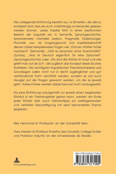 Die vorliegende Einführung besteht aus 16 Einheiten, die alle so konzipiert sind, dass sie auch unabhängig voneinander gelesen werden können. Jedes Kapitel führt in einen bestimmten Bereich der Linguistik ein: in Semantik, Sprachgeschichte, Spracherwerb, mentales Lexikon, Pragmatik, Dialektologie, Phonetik, usw. Als Ausgangspunkt und Kapitelüberschrift dienen dabei beispielsweise Fragen wie "Können Wörter müde machen?" (Semantik), "Gibt es Sprachen ohne Grammatik?" (Syntax), "Was ist Deutsch eigentlich für eine Sprache?" (Sprachgeschichte) oder "Wo sind die Wörter im Kopf und wie greift man auf sie zu?", die zugleich das Konzept dieses Buches illustrieren: Die wichtigsten linguistischen Themenkomplexe und Grundlagen sollen nicht nur in leicht zugänglicher und gut verständlicher Form vermittelt werden, sondern es soll auch Neugier auf die Fragen geweckt werden, um die es jeweils geht. Vorkenntnisse werden dabei bewusst nicht vorausgesetzt. Da eine Einführung naturgemäß nur jeweilseinen begrenzten Einblick in ein Themengebiet geben kann, werden am Ende jeder Einheit stets auch Literaturtipps zur weitergehenden und vertieften Beschäftigung mit dem behandelten Thema gegeben.