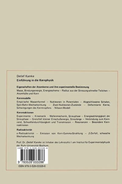 Das vorliegende Buch ist aus einer Vorlesung entstanden, die ich an der Ruhr-Universitiit Bochum im Rahmen des Zyklus "Struktur der Materie" gehalten habe und die fUr Studenten nach dem Vorexamen (ab 5. Semester) bestimmt war. In dieser dreistiindigen Vorlesung konnten natiirlich nur Ausschnitte aus dem Gesamtgebiet gebracht werden (Ergiinzung durch eine Stunde Obungen). Es wurde daher versucht, grundlegende Dinge zu be sprechen, und selbst dies konnte nur in Auswahl geschehen, wenn man erfahrungsgemii~ vorhandene Verstiindnisschwierigkeiten durch etwas genauere, auch theoretische Betrachtungen beheben wollte und damit den Zugang zur weitergehenden Literatur erleichtern wollte. Fur die AusfUhrung einer Vielzahl von Berechnungen, die Herstellung von Zeichnungen und fUr Photoarbeiten danke ich herzlich Frau Barbara Hoheisel, Frau Doris Runzer und Frau Dagmar Hake. Ebenso gilt mein Dank fUr die sorgfiiltige Herstellung des Manuskriptes Frau Elke Wiese/mann. Schlie~lich danke ich meinem Assistenten Dr. J. Krug fUr Diskussionen und Verbesserungsvorschliige zum Inhalt des Buches, sowie die Zusammen steHung des Sachwortverzeichnisses und das Mitlesen der Korrekturen. D. Kamke Bochum, Juni 1978 v I nhaltsverzeichnis 1 Eigenschaften der Atomkeme und ihre experimenteUe Bestimmung ......... . 1.1 Einleitung ........................................... .