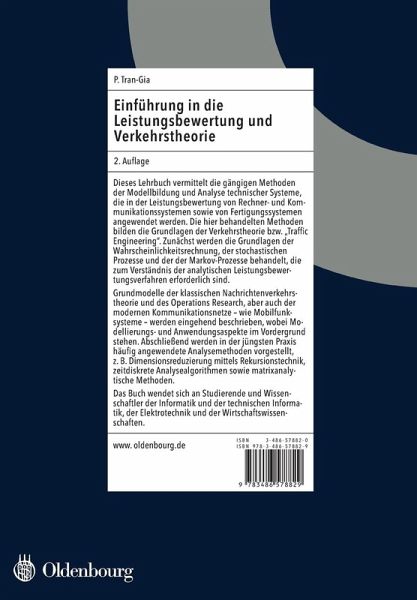 Dieses Lehrbuch vermittelt die gängigen Methoden der Modellbildung und Analyse technischer Systeme, die in der Leistungsbewertung von Rechner- und Kommunikationssystemen sowie von Fertigungssystemen angewendet werden. Die hier behandelten Methoden bilden die Grundlagen der Verkehrstheorie bzw. des "Traffic Engineering". Zunächst werden die Grundlagen der Wahrscheinlichkeitsrechnung, der stochastischen Prozesse und der Markov-Prozesse behandelt, die zum Verständnis der analytischen Leistungsbewertungsverfahren erforderlich sind. Grundmodelle der klassischen Nachrichtenverkehrstheorie und des Operations Research, aber auch der modernen Kommunikationsnetze - wie Mobilfunksysteme - werden eingehend beschrieben, wobei Modellierungs- und Anwendungsaspekte im Vordergrund stehen. Abschließend werden in der jüngsten Praxis häufig angewendete Analysemethoden vorgestellt, z.B. Dimensionsreduzierung mittels Rekursionstechnik, zeitdiskrete Analysealgorithmen sowie matrixanalytische Methoden.