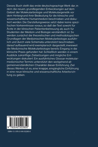Dieses Buch stellt das erste deutschsprachige Werk dar, in dem die neuen, grundlegenden Entwicklungen auf dem Gebiet der Molekularbiologie und Molekulargenetik vor dem Hintergrund ihrer Bedeutung für die klinische und wissenschaftliche Humanmedizin beschrieben und diskutiert werden. Die Darstellungsweise setzt dabei keine spezifischen Vorkenntnisse voraus, so daß der Text sowohl für Ärzte in der klinischen Patientenbetreuung als auch für Studenten der Medizin und der Biologie verständlich ist. So werden zunächst die theoretischen und methodologischen Grundlagen der Medizinischen Molekularbiologie ausführlich und durch viele Schemata unterstützt beschrieben; darauf aufbauend wird exemplarisch dargestellt, inwieweit die Medizinische Molekularbiologie bereits Eingang in die klinische Praxis gefunden hat. Schließlich werden in einem Ausblick zukünftige Zielsetzungen und mögliche Entwicklungen diskutiert. Ein ausführliches Glossar molekularmedizinischer Termini unterstützt den weitgehend allgemeinverständlichen Charakter dieser Einführung. Ziel dieses Werkes ist es, eine knappe, eingängliche Einführung in eine neue klinische und wissenschaftliche Arbeitsrichtung zu geben.
