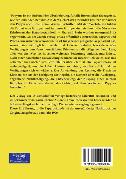 Diese Einführung in die Papyruskunde ist ein unveränderter Nachdruck der Originalausgabe aus dem Jahr 1900.
