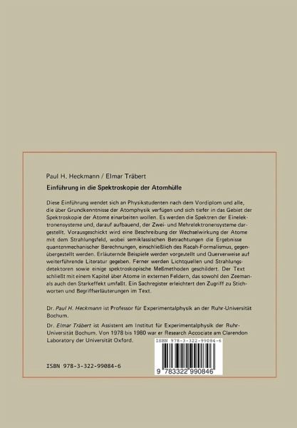 Das vorliegende Buch ist aus einer zweistUndigen, zweisemestri gen Vorlesung entstanden, die sich vornehmlich an Physikstuden ten nach dem Vordiplom richtete. Einige Grundkenntnisse in Quantenmechanik wurden vorausgesetzt. Trotzdem schien eine et was breitere Aufarbeitung mancher Grundlagen angemessen. Diese sollten auch Lesern zugute kommen, die sich mit der Atomphysik noch nicht naher befaBt haben. Auf der anderen Seite wurde der notwendige mathematische Formalismus, z. B. die Racah-Algebra, in den Text einbezogen, urn durch Anwendungsbeispiele die Arbeit mit weiterfUhrender Literatur zu erleichtern. Auf Konsistenz der benutzten Einheiten (SI bzw. atomare Einheiten) und Stan dardwerte wurde geachtet; die Konversionsfaktoren sind im Text angegeben. Ebenso haben wir uns bemUht, neben den vorhandenen LehrbUchern auf Originalliteratur hinzuweisen, wo die Neuheit des Sachgebietes es geboten erscheinen lieB. Der Umfang der Vorlesung bzw. des Buches machte eine Stoffbeschrankung not wendig; den Leser, der manche wichtige Teilgebiete (z. B. ROnt genspektren, Hyperfeinstruktur) vermiBt, bitten wir urn Nach sicht. Unser Dank gilt Herrn Prof. Dr. H. v. Buttlar fUr sein Inter esse am Zustandekommen des Buches. FUr ihre groBe Geduld und Sorgfalt bei der Anfertigung des Manuskripts danken wir Frau Anke Pfeifer. Den Herren W. Sager und J. Wahlert sind wir fUr die Hilfe bei der Herstellung der Abbildungen zu Dank ver pflichtet. Bochum, April 1980 P. H. Heckmann E. Trabert VI Inhalt 1. Allgemeines tiber Spektren der Atome 1. 1 Historische Einleitung 1 Spektren und Spektralserien 3 1. 2 Die Strahlung der Atome 10 1. 3 Elektrische Dipolstrahlung 10 1. 3.