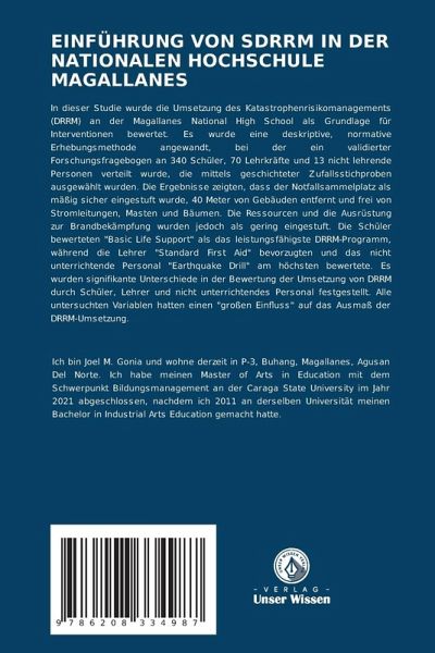 In dieser Studie wurde die Umsetzung des Katastrophenrisikomanagements (DRRM) an der Magallanes National High School als Grundlage für Interventionen bewertet. Es wurde eine deskriptive, normative Erhebungsmethode angewandt, bei der ein validierter Forschungsfragebogen an 340 Schüler, 70 Lehrkräfte und 13 nicht lehrende Personen verteilt wurde, die mittels geschichteter Zufallsstichproben ausgewählt wurden. Die Ergebnisse zeigten, dass der Notfallsammelplatz als mäßig sicher eingestuft wurde, 40 Meter von Gebäuden entfernt und frei von Stromleitungen, Masten und Bäumen. Die Ressourcen und die Ausrüstung zur Brandbekämpfung wurden jedoch als gering eingestuft. Die Schüler bewerteten "Basic Life Support" als das leistungsfähigste DRRM-Programm, während die Lehrer "Standard First Aid" bevorzugten und das nicht unterrichtende Personal "Earthquake Drill" am höchsten bewertete. Es wurden signifikante Unterschiede in der Bewertung der Umsetzung von DRRM durch Schüler, Lehrer und nicht unterrichtendes Personal festgestellt. Alle untersuchten Variablen hatten einen "großen Einfluss" auf das Ausmaß der DRRM-Umsetzung.