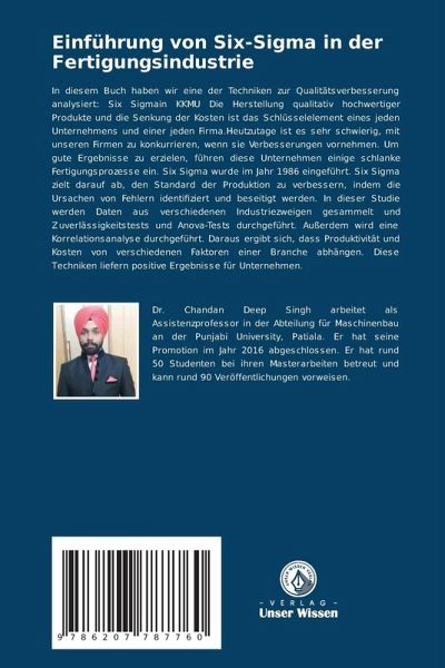In diesem Buch haben wir eine der Techniken zur Qualitätsverbesserung analysiert: Six Sigmain KKMU Die Herstellung qualitativ hochwertiger Produkte und die Senkung der Kosten ist das Schlüsselelement eines jeden Unternehmens und einer jeden Firma.Heutzutage ist es sehr schwierig, mit unseren Firmen zu konkurrieren, wenn sie Verbesserungen vornehmen. Um gute Ergebnisse zu erzielen, führen diese Unternehmen einige schlanke Fertigungsprozesse ein. Six Sigma wurde im Jahr 1986 eingeführt. Six Sigma zielt darauf ab, den Standard der Produktion zu verbessern, indem die Ursachen von Fehlern identifiziert und beseitigt werden. In dieser Studie werden Daten aus verschiedenen Industriezweigen gesammelt und Zuverlässigkeitstests und Anova-Tests durchgeführt. Außerdem wird eine Korrelationsanalyse durchgeführt. Daraus ergibt sich, dass Produktivität und Kosten von verschiedenen Faktoren einer Branche abhängen. Diese Techniken liefern positive Ergebnisse für Unternehmen.
