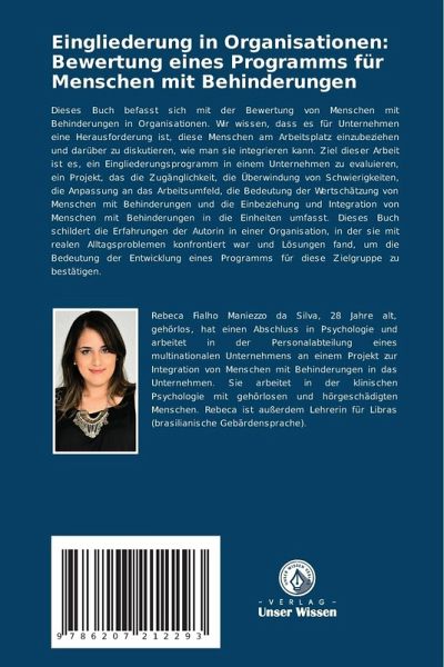 Dieses Buch befasst sich mit der Bewertung von Menschen mit Behinderungen in Organisationen. Wir wissen, dass es für Unternehmen eine Herausforderung ist, diese Menschen am Arbeitsplatz einzubeziehen und darüber zu diskutieren, wie man sie integrieren kann. Ziel dieser Arbeit ist es, ein Eingliederungsprogramm in einem Unternehmen zu evaluieren, ein Projekt, das die Zugänglichkeit, die Überwindung von Schwierigkeiten, die Anpassung an das Arbeitsumfeld, die Bedeutung der Wertschätzung von Menschen mit Behinderungen und die Einbeziehung und Integration von Menschen mit Behinderungen in die Einheiten umfasst. Dieses Buch schildert die Erfahrungen der Autorin in einer Organisation, in der sie mit realen Alltagsproblemen konfrontiert war und Lösungen fand, um die Bedeutung der Entwicklung eines Programms für diese Zielgruppe zu bestätigen.