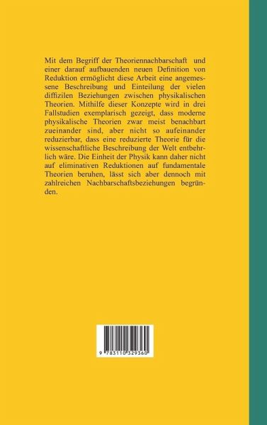 Mit dem Begriff der Theoriennachbarschaft und einer darauf aufbauenden neuen Definition von Reduktion ermöglicht diese Arbeit eine angemessene Beschreibung und Einteilung der vielen diffizilen Beziehungen zwischen physikalischen Theorien. Mithilfe dieser Konzepte wird in drei Fallstudien exemplarisch gezeigt, dass moderne physikalische Theorien zwar meist benachbart zueinander sind, aber nicht so aufeinander reduzierbar, dass eine reduzierte Theorie für die wissenschaftliche Beschreibung der Welt entbehrlich wäre. Die Einheit der Physik kann daher nicht auf eliminativen Reduktionen auf fundamentale Theorien beruhen, lässt sich aber dennoch mit zahlreichen Nachbarschaftsbeziehungen begründen.