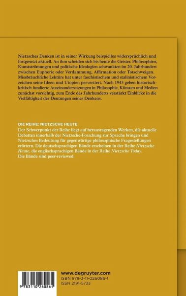 Nietzsches Denken ist in seiner Wirkung beispiellos widersprüchlich und fortgesetzt aktuell. An ihm scheiden sich bis heute die Geister. Philosophien, Kunstströmungen und politische Ideologien schwankten im 20. Jahrhundert zwischen Euphorie oder Verdammung, Affirmation oder Totschweigen. Missbräuchliche Lektüre hat unter faschistischem und stalinistischem Vorzeichen seine Ideen und Utopien pervertiert. Nach 1945 geben historisch-kritisch fundierte Auseinandersetzungen in Philosophie, Künsten und Medien zunächst vorsichtig, zum Ende des Jahrhunderts verstärkt Einblicke in die Vielfältigkeit der Deutungen seines Denkens. In den Hauptströmungen von Philosophie, Ethik und Ästhetik und in den Kunsttheorien der Moderne und Postmoderne ist Nietzsches Denken impulsgebend. Naturwissenschaftliche und soziologische Interessen an seinen provozierenden Thesen zeigen die Unabgegoltenheit seines Denkens. Literarische und musikalische Adaptionen, seine Bedeutung für bildende Künstler vom Expressionismus bis zur Neuen Sachlichkeit, sein Einfluss auf die Entwürfe der modernen Architektur geben aus der Sicht gegenwärtiger internationaler Nietzsche-Forschung einen umfassenden Überblick über einen der einflussreichsten Denker auf das 20. Jahrhundert.