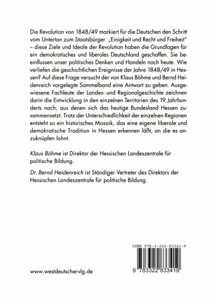 Die Revolution von 1848 markiert für die Deutschen nicht nur den Schritt vom Untertan zum Staatsbürger, sondern sie bildet auch eine entscheiden de Station auf dem Weg zu einem Europa der Menschen-und Bürgerrechte, der individuellen Selbstbestimmung und der sozialen Gerechtigkeit. Erst der Zerfall des Bismarckreiches, die Erschütterungen von zwei Weltkrie gen, die Schrecken des Naziterrors und die Überwindung der Spaltung Deutschlands haben uns den Blick für diese überragende Leistung der "Achtundvierziger" geöffnet. Wenn damals auch der erste Versuch zur Schaffung eines deutschen Nationalstaates auf demokratischer Grundlage an der Zählebigkeit des Fürstenstaates zerbrach, so wurden durch dieses historische Ereignis doch die demokratischen, liberalen und sozialen Tra ditionen begründet, an die unsere Demokratie heute anknüpfen kann. Es ist eine wichtige Aufgabe der politischen Bildung, diese Traditionen lebendig zu erhalten und anhand der Regionalgeschichte zu vertiefen. Mit der Publikation "Einigkeit und Recht und Freiheit. Die Revolution von 1848/49 im Bundesland Hessen", will die Hessische Landeszentrale für politische Bildung durch die Darstellung der geschichtlichen Ereignisse der Revolutionsjahre in den Territorien des 19. Jahrhunderts, aus denen sich unser heutiges Bundesland Hessen als ein Kind der amerikanischen Besat zungsmacht konstituiert, dazu einen Beitrag leisten. Dem Kurfürstentum Hessen-Kassel, dem Fürstentum Waldeck, der Freien Reichsstadt Frank furt am Main, der Landgrafschaft Hessen-Homburg, dem Herzogtum Nas sau und dem Großherzogtum Hessen-Darmstadt ist darin jeweils ein eige ner Beitrag gewidmet.