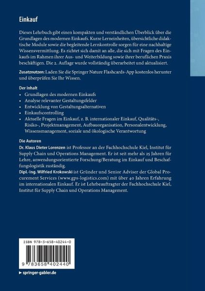 Dieses Lehrbuch gibt einen kompakten und verständlichen Überblick über die Grundlagen des modernen Einkaufs. Kurze Lerneinheiten, übersichtliche didaktische Module sowie die begleitende Lernkontrolle sorgen für eine nachhaltige Wissensvermittlung. Es richtet sich damit an alle, die sich mit Fragen des Einkaufs im Rahmen ihrer Aus- und Weiterbildung sowie ihrer beruflichen Praxis beschäftigen. Die 2. Auflage wurde vollständig überarbeitet und aktualisiert.
