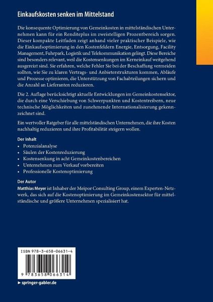 Die konsequente Optimierung von Gemeinkosten in mittelständischen Unternehmen kann für ein Renditeplus im zweistelligen Prozentbereich sorgen. Dieser kompakte Leitfaden zeigt anhand vieler praktischer Beispiele, wie die Einkaufsoptimierung in den Kostenfeldern Energie, Entsorgung, Facility Management, Fuhrpark, Logistik und Telekommunikation gelingt. Diese Bereiche sind besonders relevant, weil die Kostensenkungen im Kerneinkauf weitgehend ausgereizt sind. Sie erfahren, welche Fehler Sie bei der Beschaffung vermeiden sollten, wie Sie zu klaren Vertrags- und Anbieterstrukturen kommen, Abläufe und Prozesse optimieren, die Unterstützung von Fachabteilungen sichern und die Anzahl an Lieferanten reduzieren. Die 2. Auflage berücksichtigt aktuelle Entwicklungen im Gemeinkostensektor, die durch eine Verschiebung von Schwerpunkten und Kostentreibern, neue technische Möglichkeiten und zunehmende Internationalisierung gekennzeichnet sind. Ein wertvoller Ratgeber für alle mittelständischen Unternehmen, die ihre Kosten nachhaltig reduzieren und ihre Profitabilität steigern wollen.