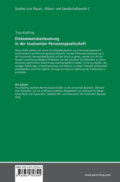 Diese Arbeit widmet sich einem Schnittstellenbereich aus Einkommensteuerrecht, Insolvenzrecht und Personengesellschaftsrecht. Um der Einkommensbesteuerung in der insolventen Personengesellschaft auf den Grund zu gehen, wendet sich die Verfasserin zunächst grundlegend Problemen aus den einzelnen Schnittstellen zu, bevor die daraus gewonnenen Erkenntnisse zusammengeführt werden. So ist es möglich, die wenigen Äußerungen in Rechtsprechung und Literatur zu dieser Thematik systematisch aufzubereiten und einen eigenen Lösungsvorschlag zur Auflösung der Problematik zu erarbeiten.