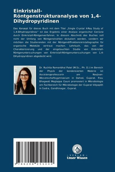 Das Konzept für dieses Buch mit dem Titel "Single Crystal X-Ray Study of 1,4-Dihydropyridines" ist das Ergebnis einer Analyse organischer Gerüste durch Einkristall-Röntgenverfahren. In diesem Abschnitt des Buches soll nicht der Umfang von Röntgenstrahlen diskutiert werden, sondern wir möchten die Studierenden mit der Röntgendiffraktionskristallographie für organische Moleküle vertraut machen. Lehrbuch, das von der Charakterisierung und der eingetauchten Studie von Einkristall-Röntgenuntersuchungen von Einkristall-Röntgenuntersuchungen von 1,4-Dihydropyridinen abgedeckt wird.