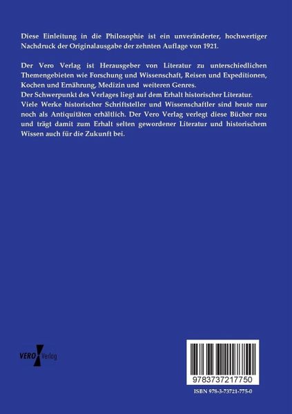 Diese Einleitung in die Philosophie ist ein unveränderter, hochwertiger Nachdruck der Originalausgabe der zehnten Auflage von 1921.
