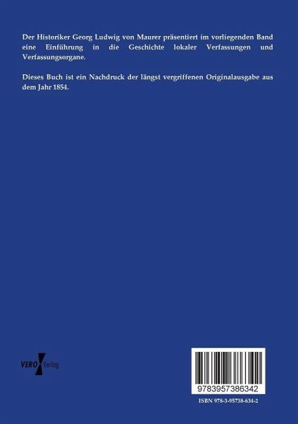 Der Historiker Georg Ludwig von Maurer präsentiert im vorliegenden Band eine Einführung in die Geschichte lokaler Verfassungen und Verfassungsorgane. Dieses Buch ist ein Nachdruck der längst vergriffenen Originalausgabe aus dem Jahr 1854.