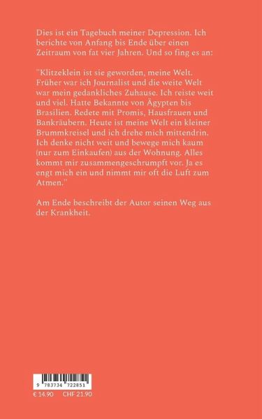 Dies ist ein Tagebuch meiner Depression. Ich berichte von Anfang bis Ende über einen Zeitraum von fat vier Jahren. Und so fing es an:"Klitzeklein ist sie geworden, meine Welt. Früher war ich Journalist und die weite Welt war mein gedankliches Zuhause. Ich reiste weit und viel. Hatte Bekannte von Ägypten bis Brasilien. Redete mit Promis, Hausfrauen und Bankräubern. Heute ist meine Welt ein kleiner Brummkreisel und ich drehe mich mittendrin. Ich denke nicht weit und bewege mich kaum (nur zum Einkaufen) aus der Wohnung. Alles kommt mir zusammengeschrumpft vor. Ja es engt mich ein und nimmt mir oft die Luft zum Atmen." Am Ende beschreibt der Autor seinen Weg aus der Krankheit.
